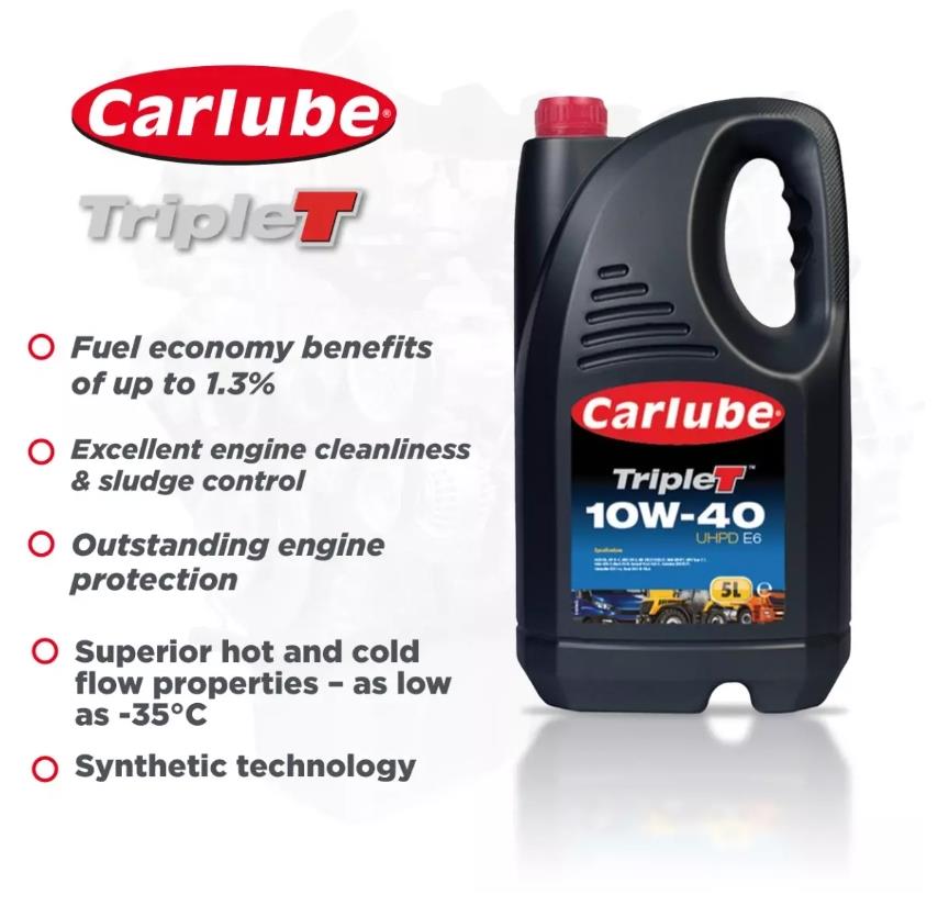 Carlube has developed a new series of engine oils for commercial vehicle engines to meet the needs of the truck, transport and tractor engines. Carlube Triple T products guarantee reliable engine operation and outstanding emissions system protection. they provide operational benefits such as extended drain intervals and enhanced fuel economy.